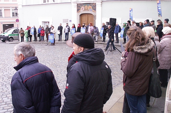 · Foto von der Menschenkette vor dem Passauer Landratsamt beim Besuch des US-Botschafters